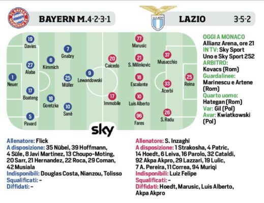 L'edizione odierna del "Corriere dello Sport" si sofferma sulla sfida fra Bayern e Lazio. Calcio d'inizio alle 21. In foto...