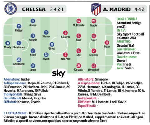 L'edizione odierna del "Corriere dello Sport" si sofferma sulla sfida fra Chelsea e Atletico Madrid. Calcio d'inizio alle 21. In...
