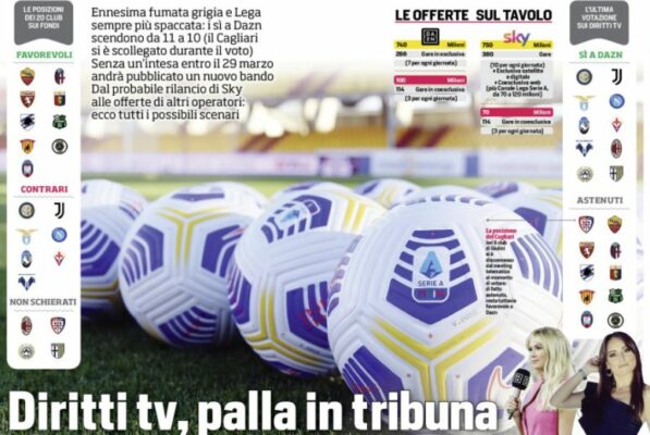 Corriere dello Sport: “Diritti tv, palla in tribuna”