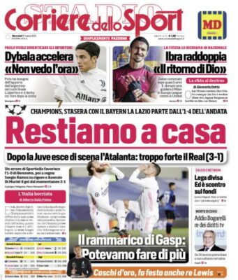 La prima pagina dell'edizione odierna del "Corriere dello Sport" si sofferma sulla Champions League. Dopo la Juventus, esce di scena...