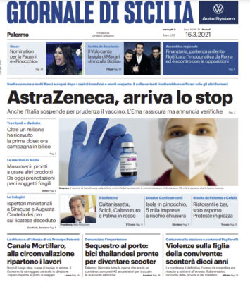 L'edizione odierna del "Giornale di Sicilia" si sofferma sul piano vaccinale anti-Covid 19 in Sicilia. Sospesa anche sull'Isola la vaccinazione...