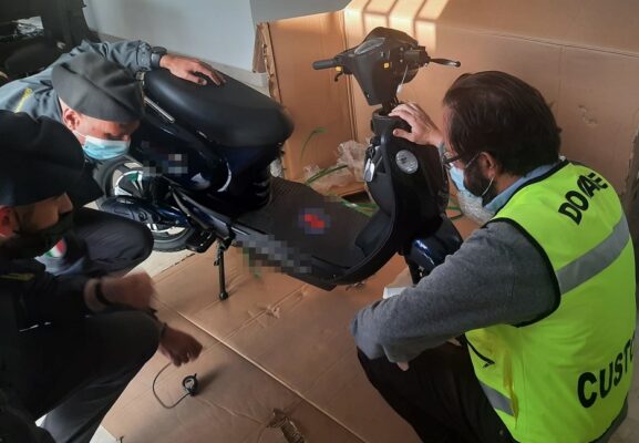 I finanzieri e i funzionari dell'ufficio dogane hanno sequestrato 42 acceleratori e un campione di bicicletta elettrica a pedalata assistita...