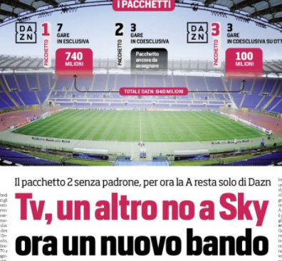 L'edizione odierna del "Corriere dello Sport" si sofferma sui diritti tv della Serie A. Il mini-rilancio di Sky per il...