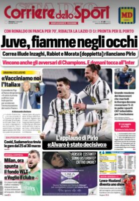 La prima pagina del Corriere dello Sport, si concentra sulla vittoria in rimonta di ieri sera della Juventus sulla Lazio,...