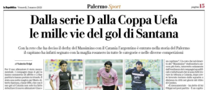 L'edizione odierna de "La Repubblica" esalta il capitano Mario Alberto Santana. Nel derby ha siglato un gol che lo ha...