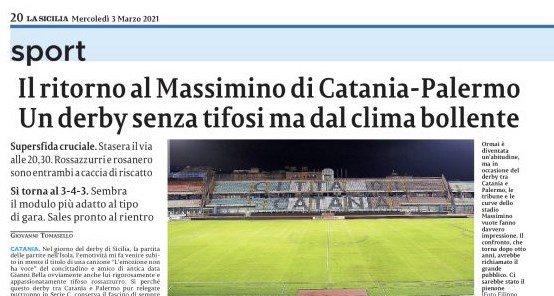 È il giorno della partita più sentita di tutte:il derby tra Catania e Palermo. L'edizione odierna de "La Sicilia" , nel presentare la...