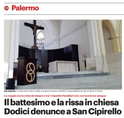 L'edizione odierna del "Giornale di Sicilia" si sofferma sulla rissa avvenuta nel corso di un battesimo celebrato a San Cipirello....