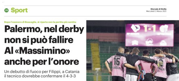 L'edizione odierna del "Giornale di Sicilia" riporta le dichiarazioni di Giacomo Filippi, allenatore del Palermo, in vista del derby contro...