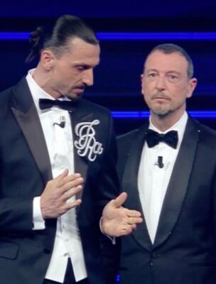 Zlatan Ibrahimovic fa il suo esordio sul palco di Sanremo sulle note di un ritmo balcanico e scherza subito con...