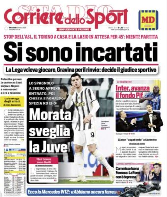La prima pagina dell'edizione odierna del "Corriere dello Sport" si sofferma sulla Serie A. Morata sveglia la Juve nella sfida...