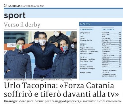 L'edizione odierna de "La Sicilia" riporta le dichiarazioni di Joe Tacopina in vista del derby fra Catania e Palermo: Il...