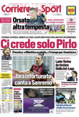 La prima pagina dell'edizione odierna del "Corriere dello Sport" si sofferma sulla lotta scudetto in Serie A. Solo Pirlo crede...