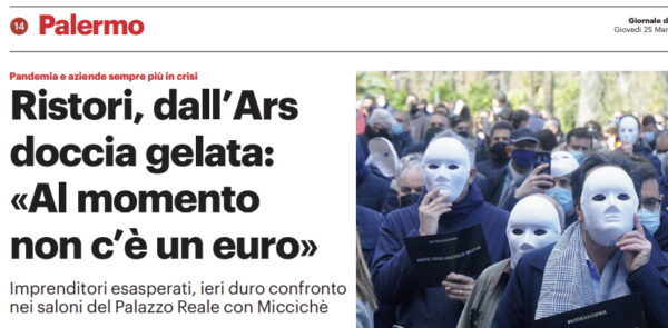 L'edizione odierna del "Giornale di Sicilia" si sofferma sulla bandiera bianca alzata dall'Ars sul tema ristori. "Non c'è un euro"...