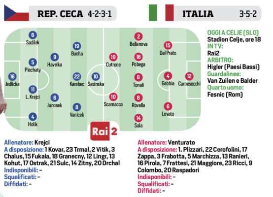 Corriere dello Sport: “Fase a gironi Europeo U21. Oggi Repubblica Ceca-Italia, le probabili formazioni”
