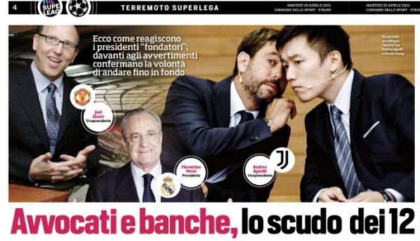 L'edizione odierna del "Corriere dello Sport" si sofferma sulla reazione dei presidenti fondatori della Super League. Mentre venivano incassate le...