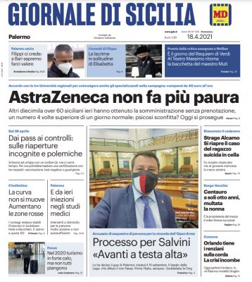 La prima pagina del "Giornale di Sicilia" si sofferma sulle vaccinazioni anti-Covid 19. Altri diecimila over 60 siciliani ieri hanno...