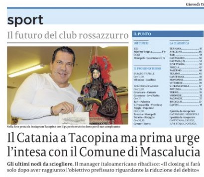 L'edizione odierna de "La Sicilia" si sofferma sulla vicenda closing in casa Catania. Nella giornata di ieri Joe Tacopina ha...