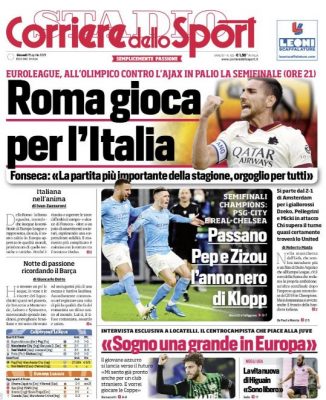 L'edizione odierna del "Corriere dello Sport" si sofferma sulla sfida fra Roma e Ajax, valevole per il ritorno dei quarti...