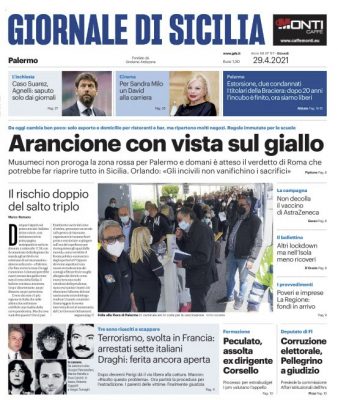 L'edizione odierna del "Giornale di Sicilia" si sofferma sul passaggio della città di Palermo in zona arancione. Alla fine in...