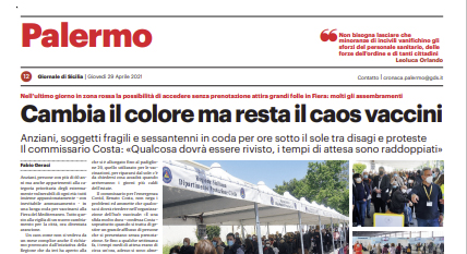 L'edizione odierna del "Giornale di Sicilia" si sofferma sulla campagna vaccinale anti-Covid 19 in Sicilia. In fila alla Fiera del...
