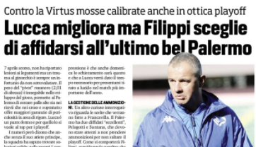Corriere dello Sport: “Lucca migliora ma Filippi sceglie di affidarsi all’ultimo bel Palermo”