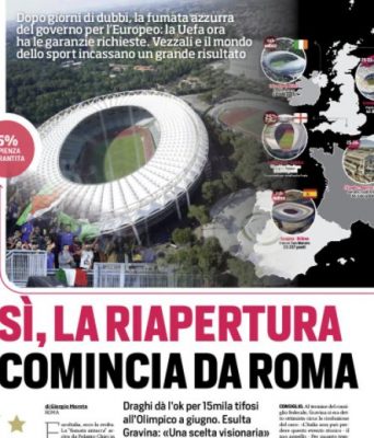 L'edizione odierna del "Corriere dello Sport" si sofferma sul ritorno del pubblico negli stadi. Si partirà da Euro 2021. La...