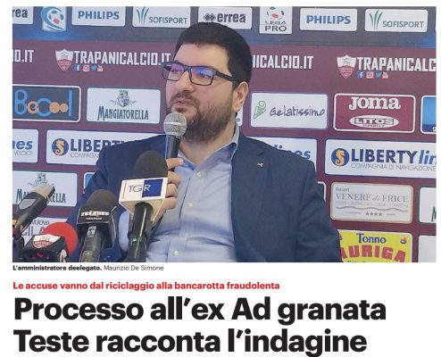 L'edizione odierna del "Giornale di Sicilia" si sofferma sulla vicenda giudiziaria riguardante la scomparsa del Trapani Calcio. Primo teste dell'accusa...