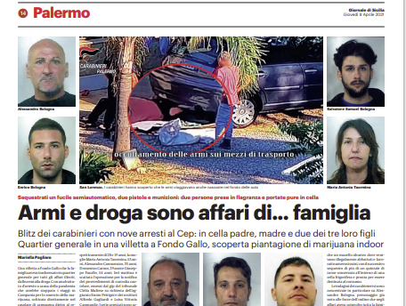 L'edizione odierna del "Giornale di Sicilia" si sofferma sull'operazione messa a segno al Cep ieri dai carabinieri della compagnia San...