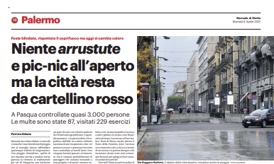 L'edizione odierna del "Giornale di Sicilia" si sofferma sulla Pasquetta di Palermo. Nessuno ha voluto sfidare i controlli e i...