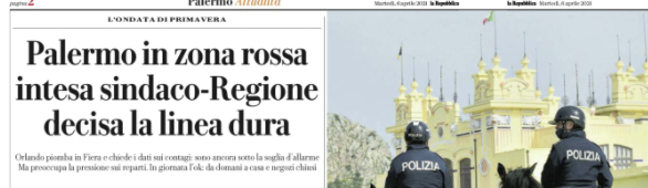 L'edizione odierna de "La Repubblica" si sofferma sul possibile ingresso della città di Palermo in zona rossa. Orlando chiede restrizioni...