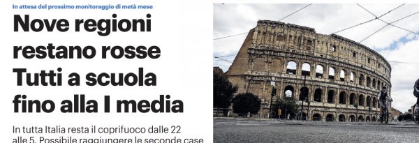 L'edizione odierna del "Giornale di Sicilia" si sofferma sull'emergenza Coronavirus in Italia. L'Italia torna ad essere divisa tra il rosso...