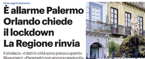 Gds: “Palermo. Forse oggi la decisione. È allarme Palermo. Orlando chiede il lockdown. La Regione rinvia”