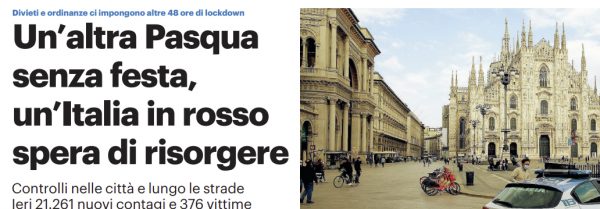 L’edizione odierna del Giornale di Sicilia si occupa della seconda Pasqua in lockdown per l'Italia a causa della pandemia da...