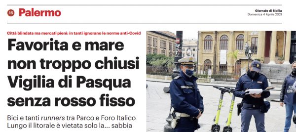 L’edizione odierna del Giornale di Sicilia si occupa della zona rossa del weekend di Pasqua in Italia. Ieri tra centro...