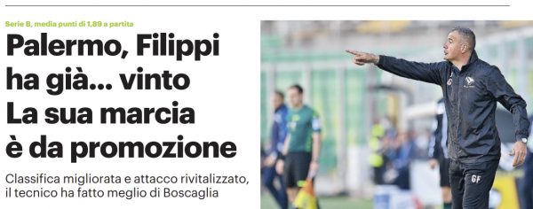L'edizione odierna del "Giornale di Sicilia" si sofferma sul rendimento del Palermo con Giacomo Filippi in panchina. Una media punti...