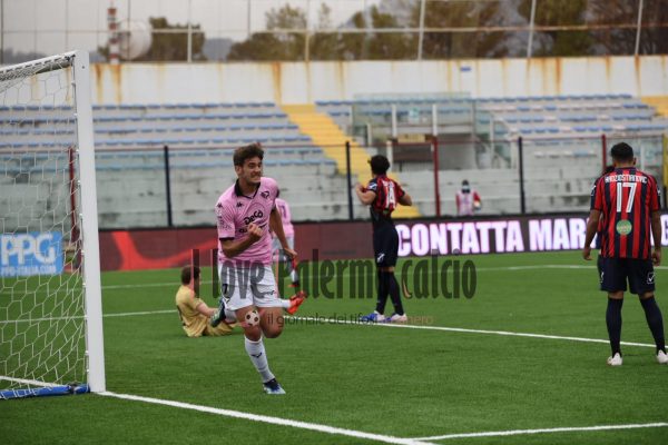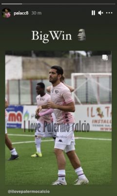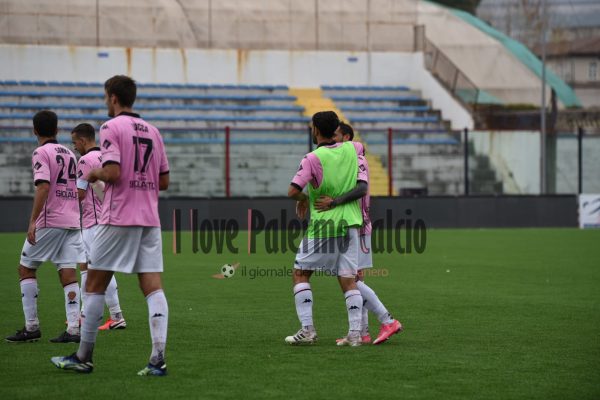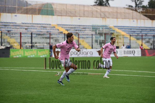 Anche il centrocampista rosanero Andrea Palazzi, celebra la vittoria di oggi arrivata contro la Casertana: