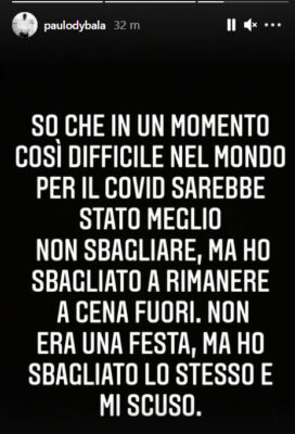 Paulo Dybala si scusa dopo essere stato sorpreso dai carabinieri, ieri sera alle 23.30, in una festa a casa di...
