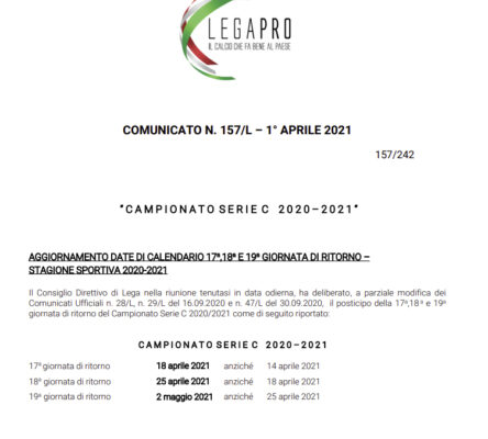 La Lega Pro attraverso i propri canali ufficiali ha annunciato lo slittamento del campionato di una settimana, dovuto alle partite...