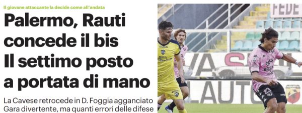 L'edizione odierna del "Giornale di Sicilia" si sofferma sul successo del Palermo contro la Cavese. Una partita fotografia di tante...