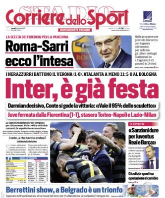 Prima pagina Corriere dello Sport: “Inter, è già festa. Atalanta a valanga sul Bologna”
