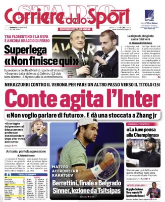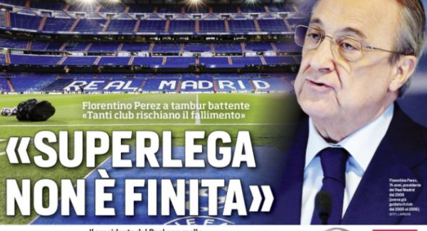 L'edizione odierna del "Corriere dello Sport" si sofferma sul rilancio di Florentino Perez, presidente del Real Madrid, sul progetto Superlega....
