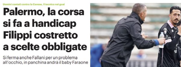 L'edizione odierna della "Gazzetta dello Sport" si sofferma sulla preparazione del Palermo verso la sfida contro la Cavese. Uomini contati...