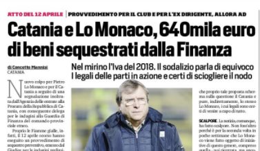 L'edizione odierna del "Corriere dello Sport" si sofferma sul provvedimento di sequestro preventivo nei confronti del Catania e dell'ex AD...