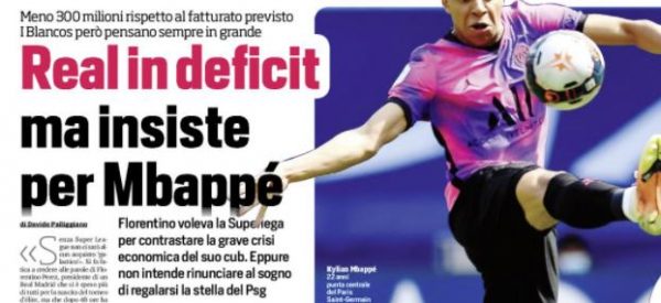 L'edizione odierna del "Corriere dello Sport" si sofferma sul calciomercato del Real Madrid. Il sogno numero uno si chiama Kylian...