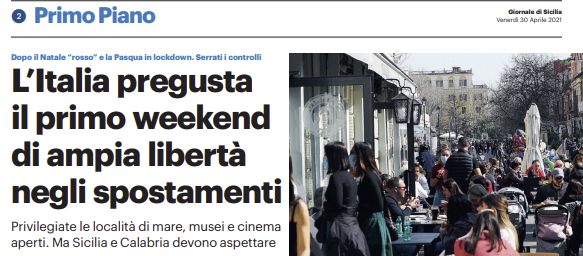 L'edizione odierna del "Giornale di Sicilia" si sofferma sulle riaperture in Italia. Per la prima volta da oltre un anno,...