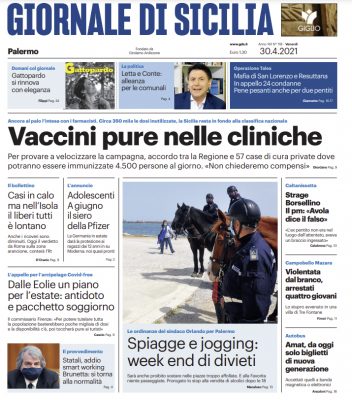 La prima pagina del "Giornale di Sicilia" si sofferma sulla campagna vaccinale sull'Isola. Per provare a velocizzare la campagna, accordo...