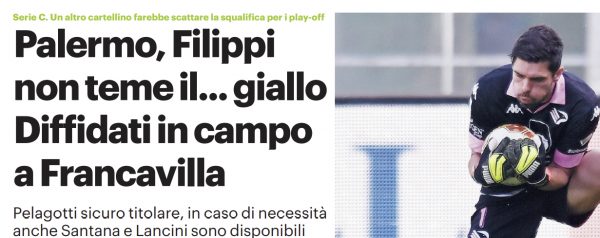 L'edizione odierna del "Giornale di Sicilia" si sofferma sui calciatori del Palermo diffidati. Saranno presenti anche a Francavilla, alla vigilia...