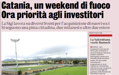L'edizione odierna della "Gazzetta dello Sport" si sofferma sul futuro societario del Catania. E' una settimana di incontri, ipotesi e...