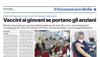 L'edizione odierna del "Giornale di Sicilia" si sofferma sull'ultima iniziativa della Regione per dare impulso alla campagna di immunizzazione. Un...