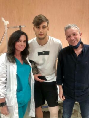 Nella foto postata dal reparto di Ortopedia e Traumatologia dell'ospedale Villa-Sofia di Palermo, l'attaccante rosanero insieme ai medici: